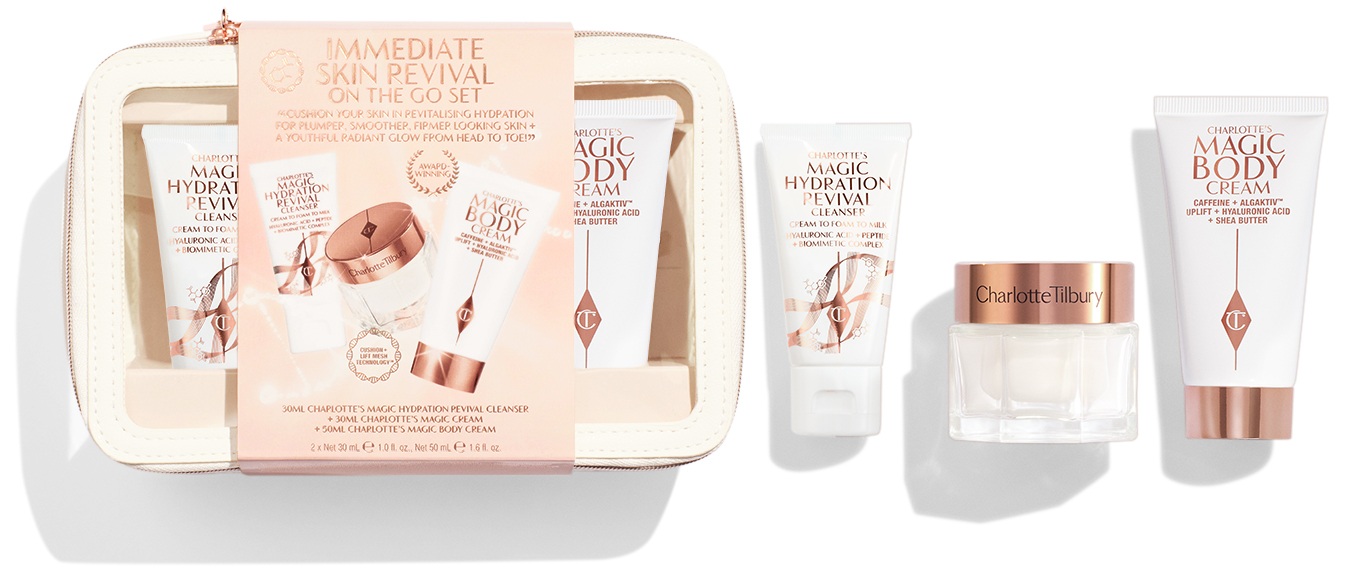 Inside, youâll find the award-winning Magic Hydration Revival Cleanser, the iconic Magic Cream, and the globally adored Magic Body Creamâeach designed to deliver instant nourishment and lasting luminosity wherever you are.