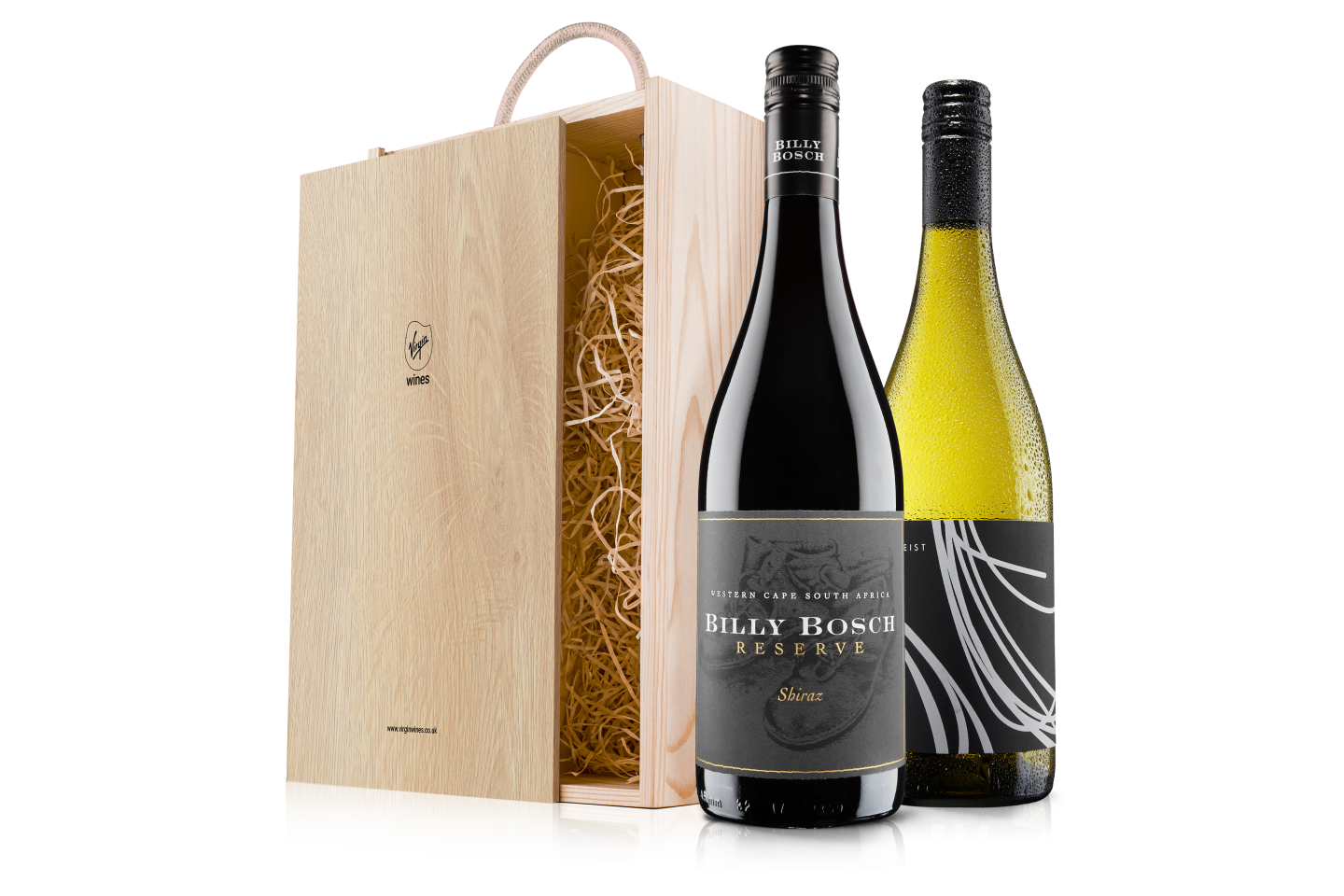 Indulge in a flavourful wine pairing presented in an elegant wooden box—just as festive as Santa’s mince pie stash! The Billy Bosch Reserve Shiraz brims with bold spice and rich coffee notes, ideal for grilled meats or a savoury cheese board. Meanwhile, the vibrant Sauvignon Blanc shines with zesty citrus and herbaceous aromas, making it a perfect match for fresh fish dishes.