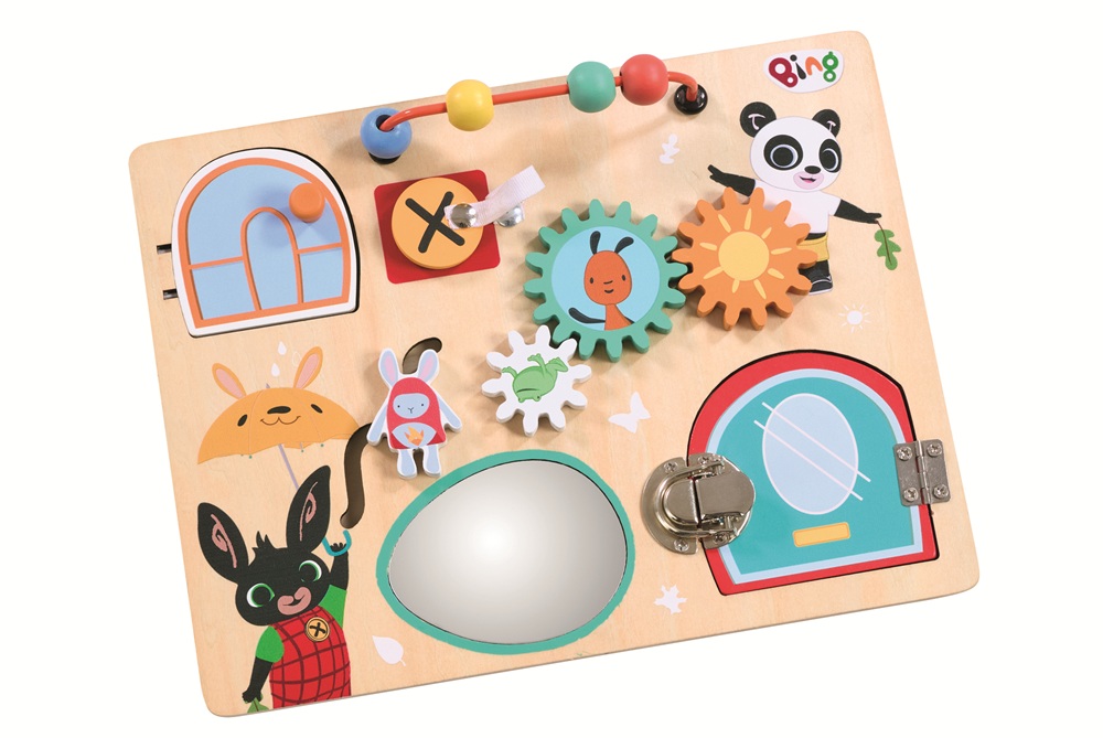 Keep curious minds engaged with the Bing Wooden Busy Board—a sensory-rich toy that encourages fine motor skills, coordination, and problem-solving through playful interaction with knobs, switches, and sliders.