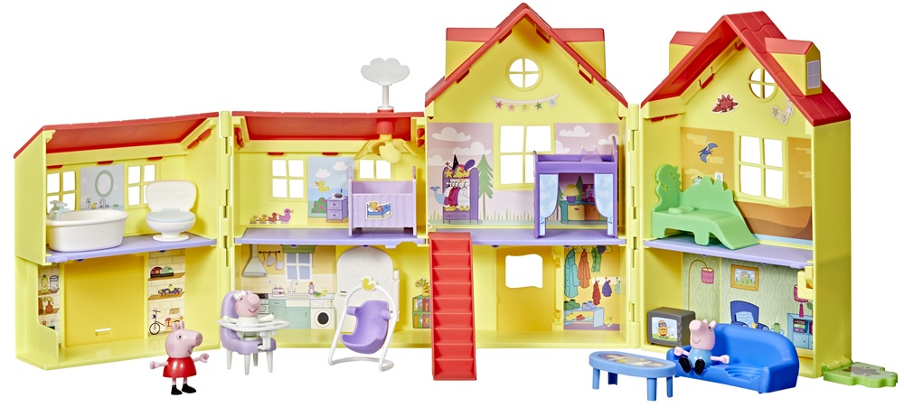 Let kids bring their favourite Peppa Pig adventures to life with the Peppa Pig Big Family House! Over 2.5 feet wide, this spacious playset features two storeys, seven rooms, and tons of fun accessories like a rainbow loft bed, dinosaur bed, bathtub, and sofa. It comes with Peppa, George, and Baby Evie figures for endless imaginative play—making it the perfect gift for any Peppa Pig fan.
