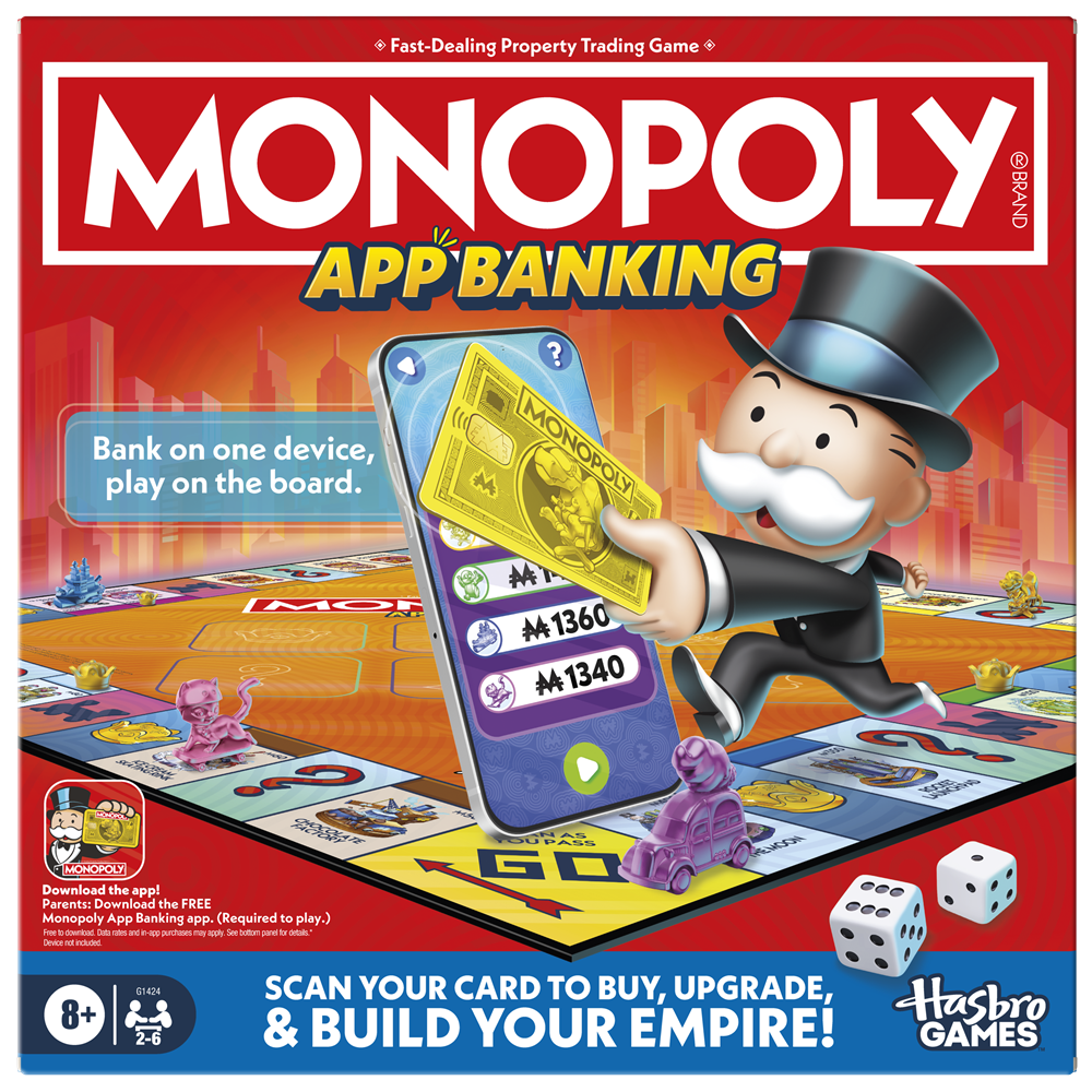 Experience Monopoly in a whole new way with app-powered banking that brings fresh digital excitement to the classic board game! Say goodbye to paper money—each player gets a personal banking card while the free app handles all the transactions, making gameplay faster, smoother, and more fun for the whole family. Kids especially love taking charge of their own card, keeping the action moving and the laughs coming.